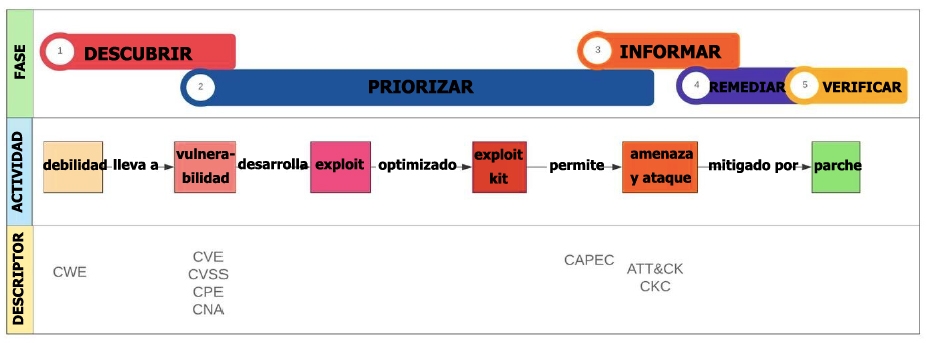 A continuación podemos ver gráficamente el ciclo de vida de las vulnerabilidades, realizado por ENISA (agencia de ciberseguridad de la Unión Europea).