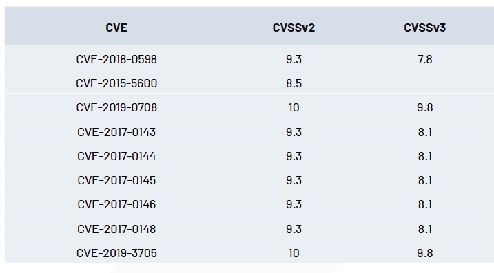 Observemos la primera línea para entender que la misma vulnerabilidad para el versionado 2 resulta crítica, mientras que para el 3 es de alto riesgo. Tomando como crítico de 9 a 10 puntos y alto de 7 a 8.9. Ambas tablas tomadas de un informe EDGESCAN 2021.