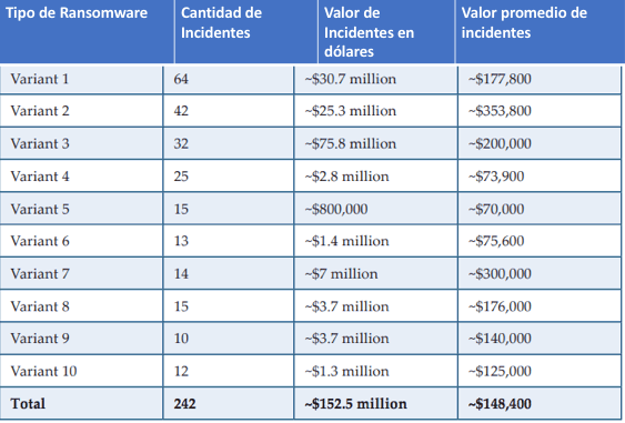 El Informe menciona que se identificaron 68 versiones diferentes de ransomware aunque no brinda más precisiones. Las 10 versiones con mayor incidencia acumularon pagos por 217,56 millones de dólares en el mismo período. El navegador TOR y el correo electrónico también parecen ser los principales medios de comunicación entre los ciberdelincuentes y sus víctimas registrándose 192 incidentes para el primero y 111 para el segundo.