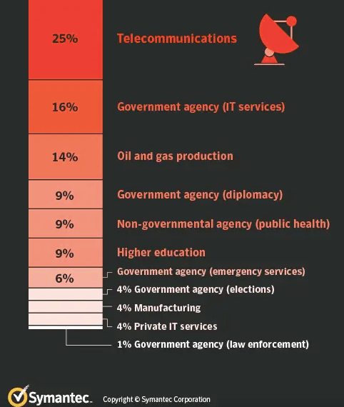 MuddyWater, también conocido como ITG7 entre otras varias denominaciones, es un grupo que ha estado activo en realidad desde 2017 en los países de Medio Oriente. Entre febrero 2018 y abril de 2019 ejecutaron una serie de campañas de phishing a personas vinculadas al gobierno, a organizaciones educativas y financieras, empresas de telecomunicaciones y del sector de defensa en Turquía, Afganistán, Irak, Azerbaiyán y en el mismísimo territorio iraní. Cabe señalar que 80 de los 131 ataques estuvieron dirigidos al sector de telecomunicaciones y servicios IT, principalmente en Pakistán y Turquía.