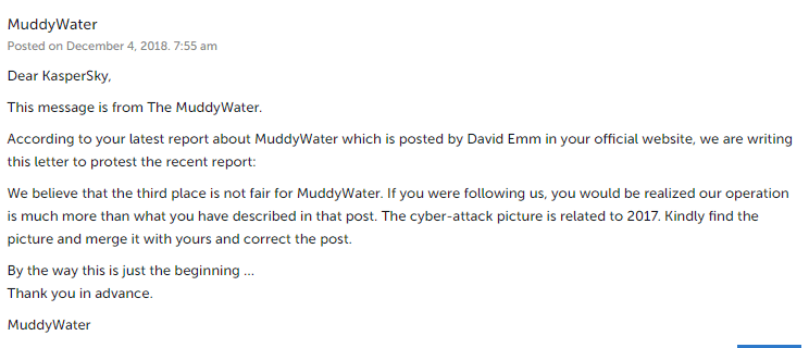 Pero lo más desconcertante fue descubrir que les gusta dejar mensajes a los expertos en ciberseguridad, una práctica más vinculada al hacktivismo. En 2019 Kaspersky Lab los rankeó en tercer lugar como «ciberamenaza«, y parece que esta calificación afectó su ego. En represalia cargaron un exploit en YouTube que desactivó el antivirus de esa plataforma, provisto por Kaspersky. LLegaron incluso a dejar un mensaje para los investigadores, por si quedaba alguna duda de su «peligrosidad». Algo similar ya le había ocurrido a los expertos de Trend Micro cuando estaban investigando las actividades del grupo en Turquía, Pakistán y Tayikistán en 2018.