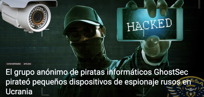 El grupo de hackers Anonymous GhostSec pirateó pequeños dispositivos de espionaje rusos en Ucrania. Los dispositivos son cámaras IP rusas que se instalaron para monitorear los movimientos ucranianos.