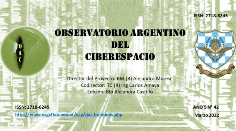 | Copyright © * | 2022 | * * | Escuela Superior de Guerra Conjunta | * Todos los derechos reservados. * | Observatorio Argentino del Ciberespacio | * Sitio web: http://www.esgcffaa.edu.ar/esp/oac-boletines.php Nuestra dirección postal es: * | Luis María Campos 480 – CABA – República Argentina | * Nuestro correo electrónico: *|observatorioargentinodelciberespacio@conjunta.undef.edu.ar | * |