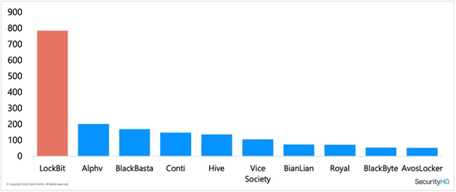 LockBit utiliza varios vectores de ataque, incluyendo ingeniería social como phishing y compromiso de correo electrónico empresarial (BEC), explotación de aplicaciones públicas, contratación de agentes de acceso inicial (IAB) y el uso de credenciales robadas para acceder a cuentas válidas. Durante el seminario web Global Threat Forecast del año pasado, organizado por SecurityHQ, se identificó a LockBit como una amenaza significativa y se les destacó como un actor de amenazas al que se debía prestar mucha atención durante 2022.