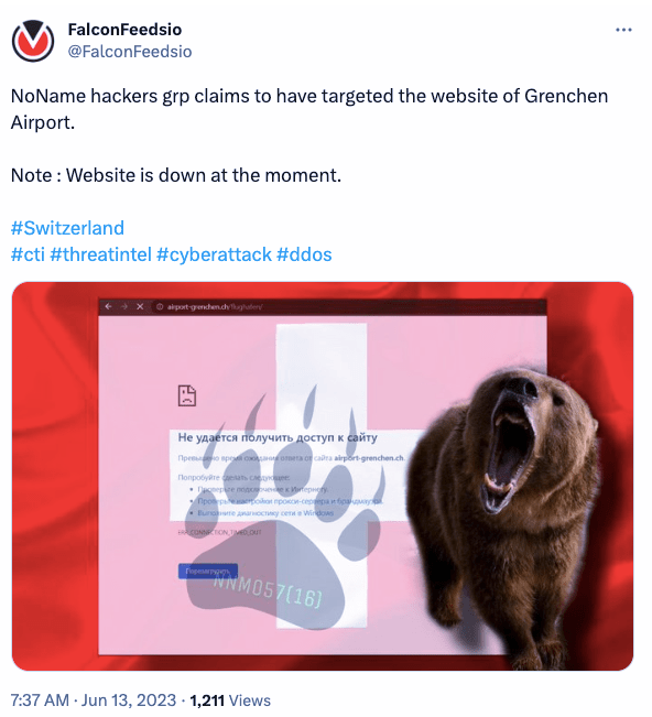 Diversas cuentas en Twitter informaron que el Grupo Ransomware Noname057(16) se adjudicó el 13 de junio en su cuenta de Telegram los ciberataques a infraestructuras críticas de Suiza, bajo la leyenda «Mientras las autoridades suizas continúen suministrando armas a los Nazis Ucranianos, seguiremos castigando los portales ruso fóbicos de ese país.»