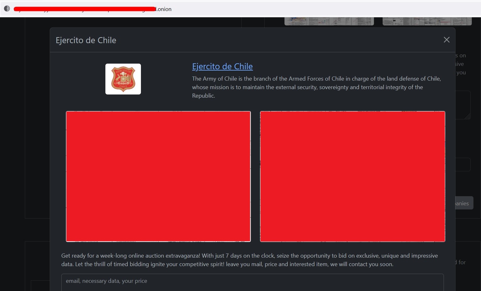 Luego de varias semanas de incertidumbres, como consecuencia del ataque informático sufrido el pasado 26 de mayo en el Ejército de Chile, donde los medios locales confirmaron la participación, acusación y posterior arresto de un cabo de la fuerza, el grupo Rhysida filtró 360.000 documentos robados a la institución castrense. Según los ciberdelincuentes, dicha cantidad correspondería solo al 30% del total robado.