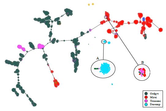 | Mirai (2016) | Como en otros casos, sus creadores pusieron a disposición el código fuente. Dentro del malware existe una gran variedad de familias, muchas de las cuales se crearon a partir de Mirai. Ataques DDoS masivos (IoT). |