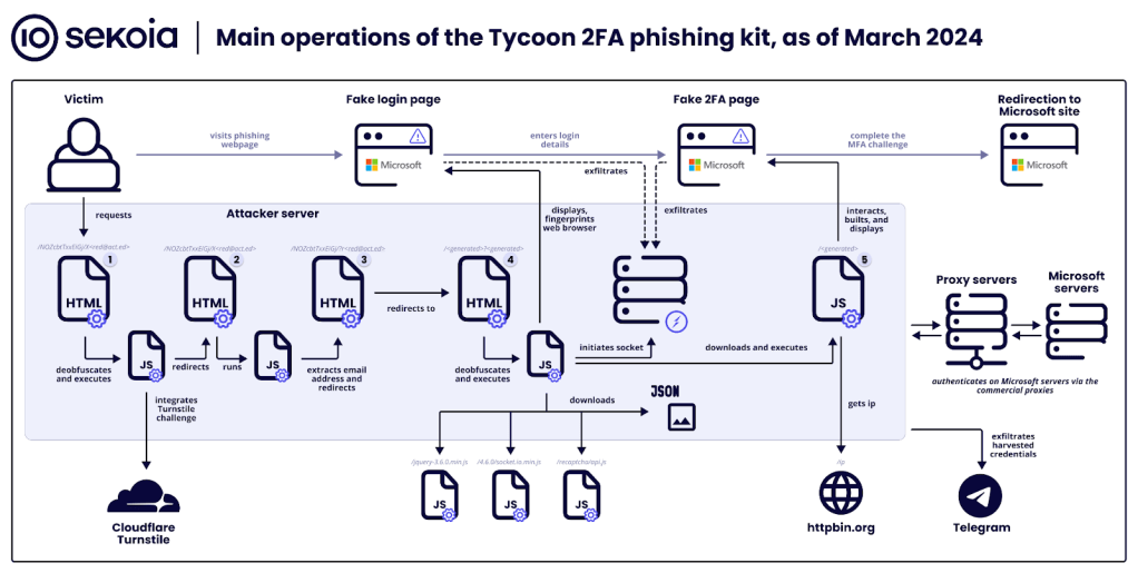 En 2024, Tycoon 2FA lanzó una versión más sigilosa (lo que indica una mejora en el kit). El servicio aprovecha 1.100 dominios y se ha observado en miles de ataques de phishing.