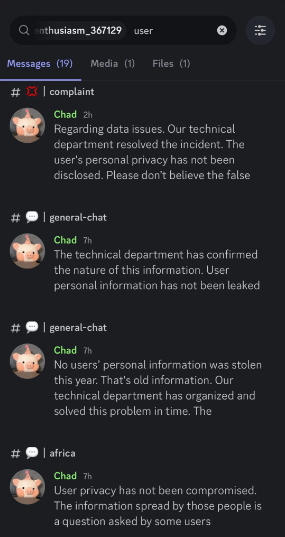 Por el momento, los voceros de la organización no efectuaron ninguna declaración al respecto, sin embargo, luego de algunos informes, se dice que estarían intentando ocultar el incidente censurando las publicaciones de los usuarios en Discord y Reddit y afirmando que, los datos filtrados, corresponden a un incidente ocurrido en el pasado.