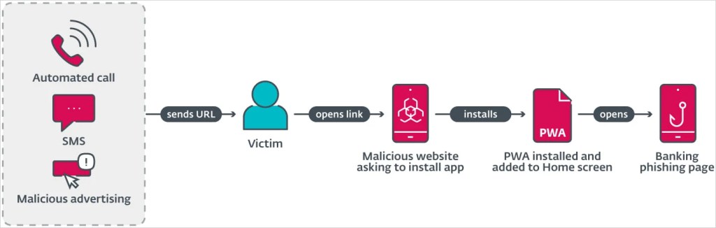 - WebAPKs en Android: En dispositivos Android, los atacantes han ido un paso más allá utilizando WebAPKs, que son versiones mejoradas de las PWAs. Estas aplicaciones aparentan ser legítimas y no generan alertas de seguridad incluso si se instalan desde fuentes externas a Google Play.