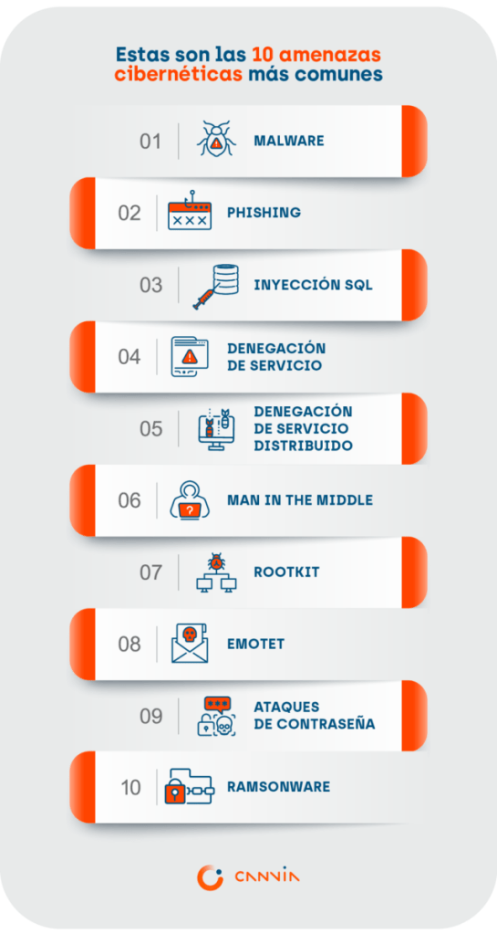 Las amenazas cibernéticas se presentan en diversas formas, cada una con características y técnicas únicas. Algunas de las amenazas más comunes incluyen: