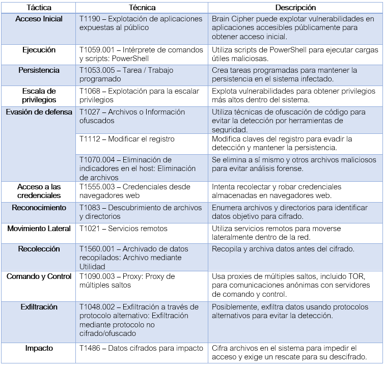 Cada víctima de Brain Cipher probablemente tiene una clave de cifrado única, lo que significa que solo los atacantes poseen los medios para descifrar los datos. Esta táctica asegura el control total de los atacantes sobre el proceso de descifrado e incrementa la probabilidad de que las víctimas paguen el rescate.