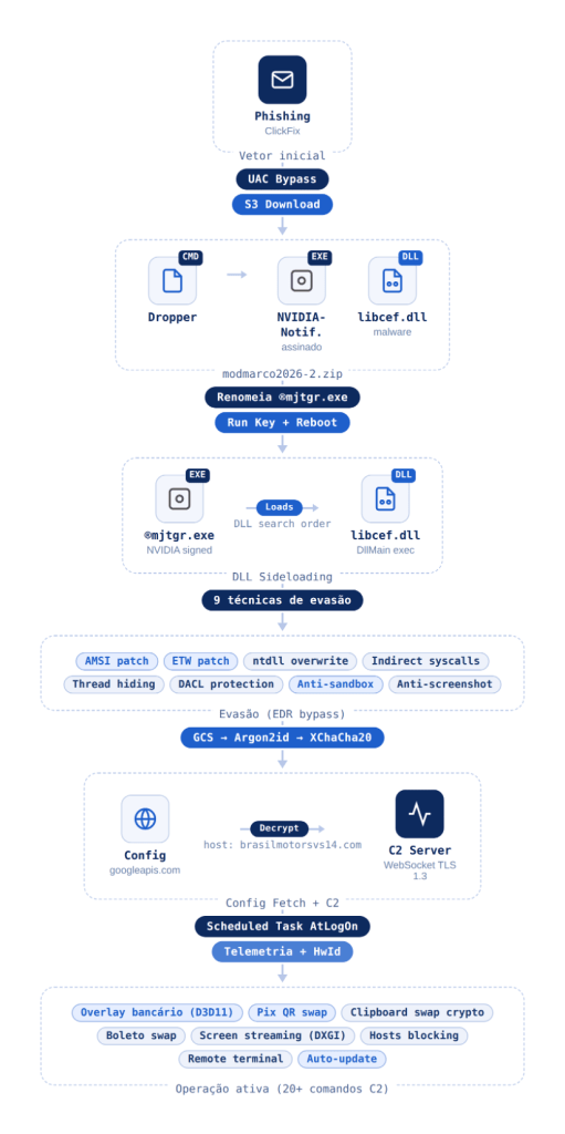 - Manipulación de archivos .LNK: Modificación persistente de accesos directos para la redirección a entornos de phishing.
